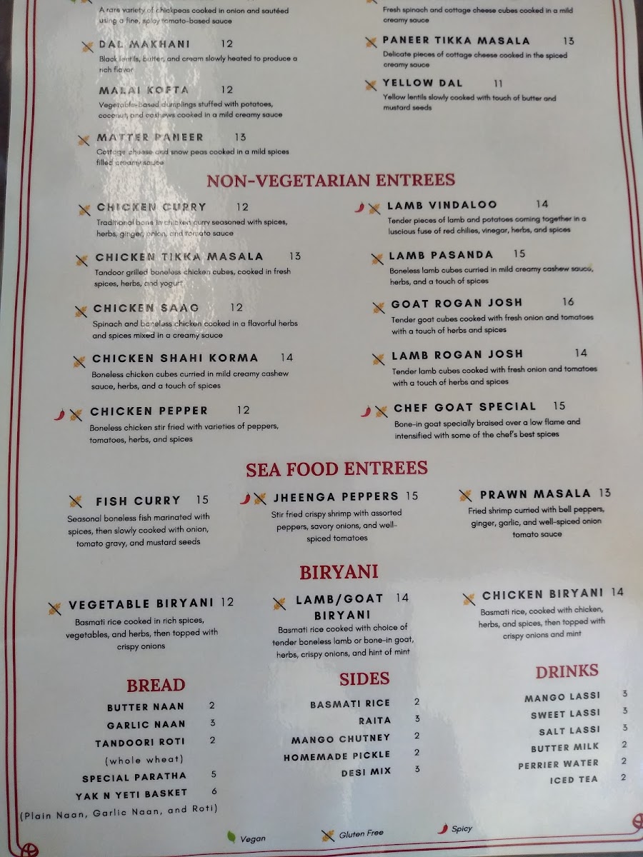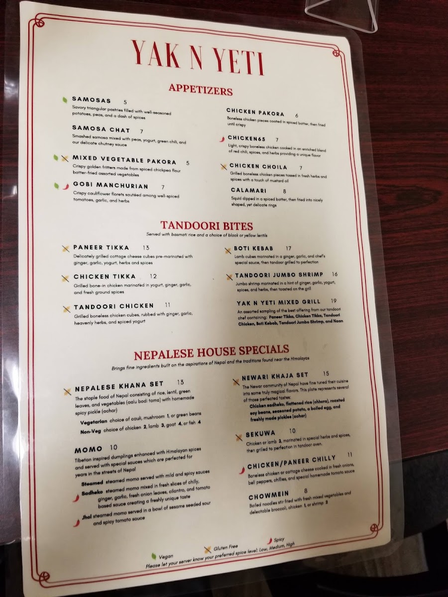 Vegan option available. The staple food of Nepal consisting of basmati rice, lentil, green leaves, and vegetables (aloo bodi tama), and a homemade spicy pickle (achar). Green Beans (Vegan), Cauliflower (Vegan), Chicken (+$2), Lamb (+$3), Fish (+$4), Goat +$4